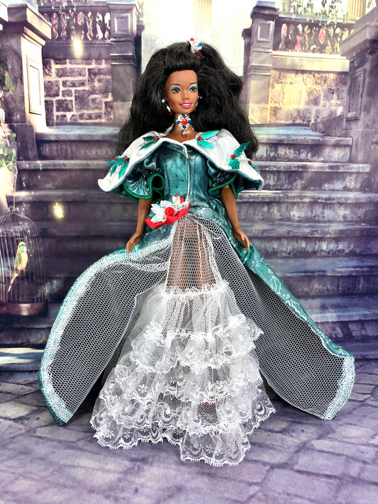 1995 Happy Holidays African American Barbie Doll in Green Dress by Mattel